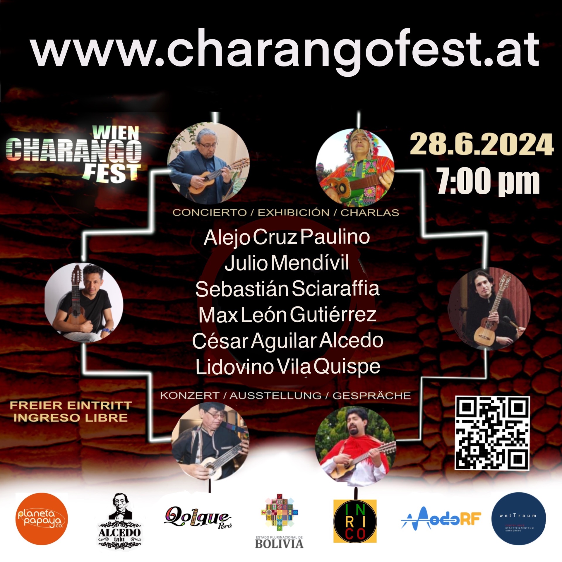 Wir sind unabhängige Musiker, Künstler und Kulturtreibende mit einem Vorschlag für das erste kollektive Charangokonzert "CHARANGOfest". Unsere Leidenschaft für die Musik und insbesondere für das Charango, ein emblematisches Instrument unserer lateinamerikanischen Kultur, hat uns dazu veranlasst, diese Veranstaltung ins Leben zu rufen, die darauf abzielt, dieses wunderschöne Instrument international zu verbreiten und zu fördern, in der Stadt Wien, einer historischen und zentralen europäischen Musikhauptstadt, und Charangospieler, die verschiedene Stile repräsentieren, zu einem Aufeinandertreffen zu bringen, um sie mit ihrem Talent zu inspirieren und auszutauschen.